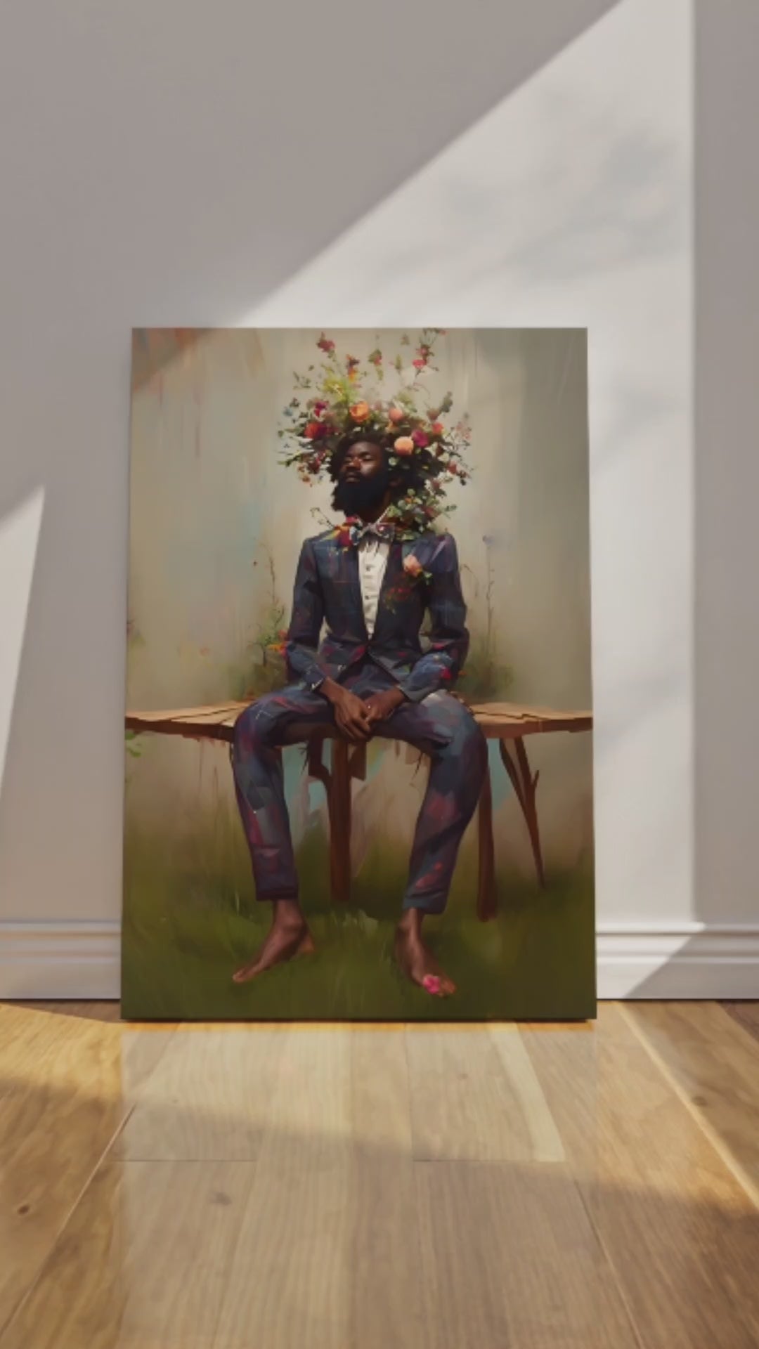 Black Man Suit Wall Art, Flower Beard Art, Vintage Portrait,Black Man Suit Wall Art, Flower Beard Art, Vintage Portrait,- Regular price