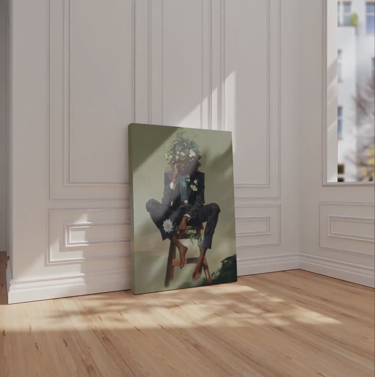 Black Man Floral Wall Art, Abstract Male Portrait, Contemporary Modern Canvas Print, Male Abstract Moody Wall Framed Print