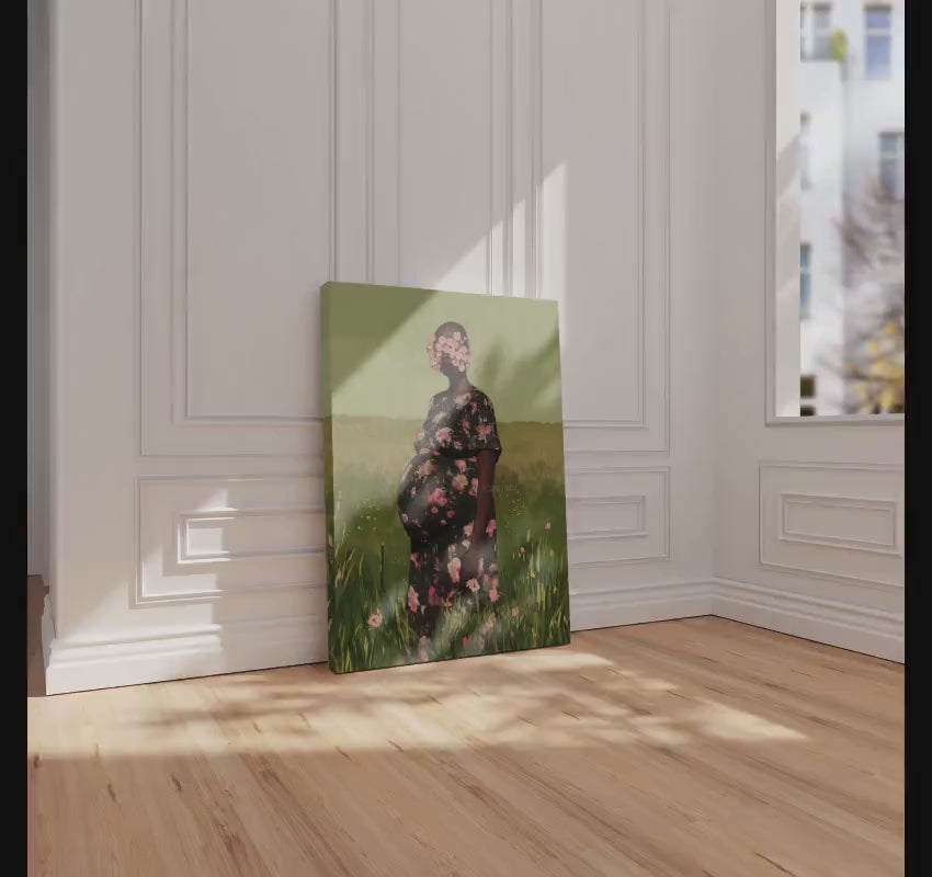 Black Pregnancy Wall Art: Colorful Motherhood, Pink and Green