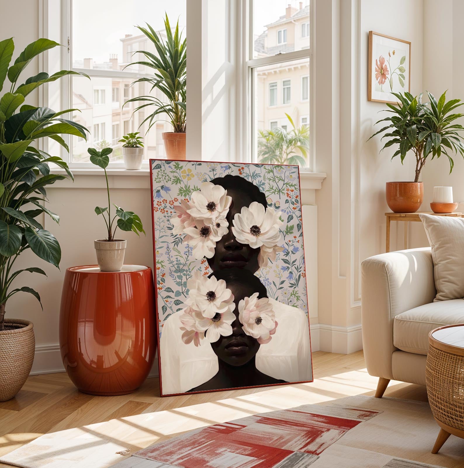 Bohemian Black Woman Floral Canvas ArtBohemian Black Woman Floral Canvas Art- Regular price
