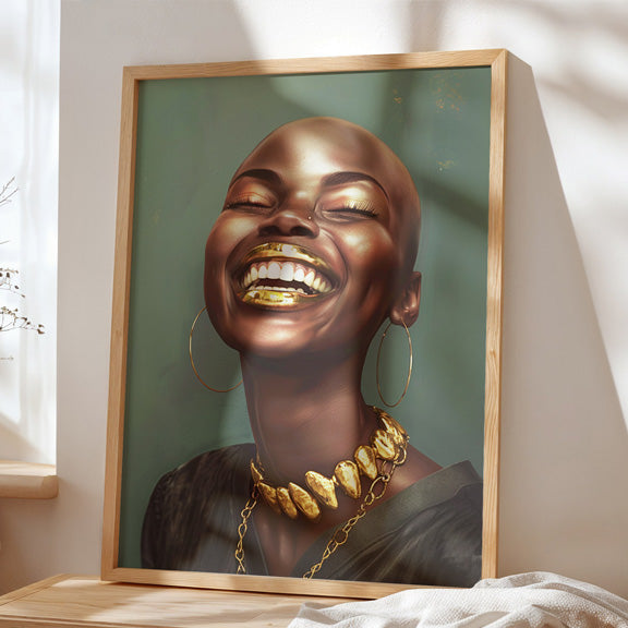 Bald Black Man Canvas Art Print: Gold GrillzBald Black Man Canvas Art Print: Gold Grillz- Regular price